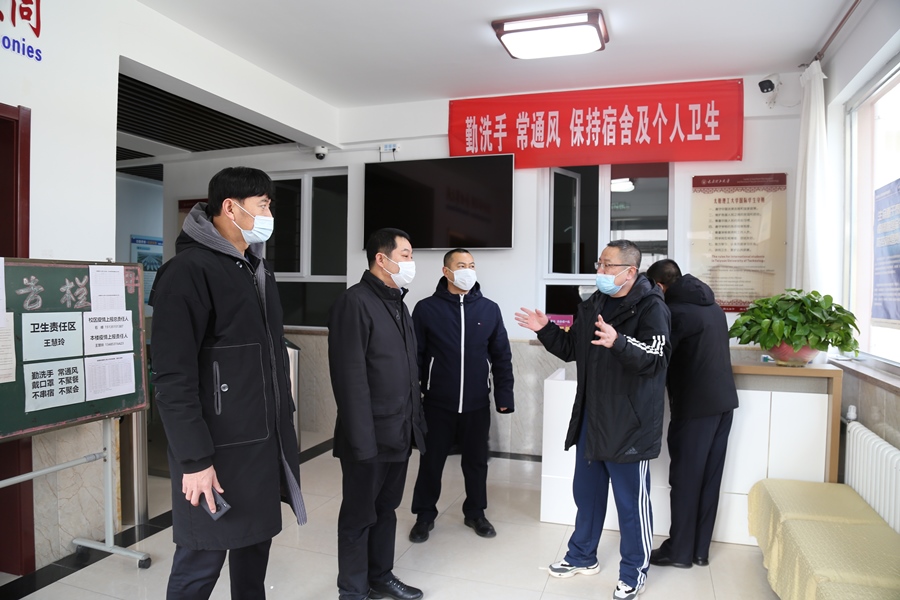 根据山西省教育厅《关于切实做好“两节”和岁末年初学校安全工作的紧急通知》(晋教安稳〔2020〕25 号)精神和学校《关于2020-2021学年寒假安排的通知》安排,连日来,副校长吴斗庆带领保卫处等相关负责人、有关工作人员,深入学生公寓、食堂、实验室、消防控制室、校园门岗等重点场所部位开展安全工作专项检查。