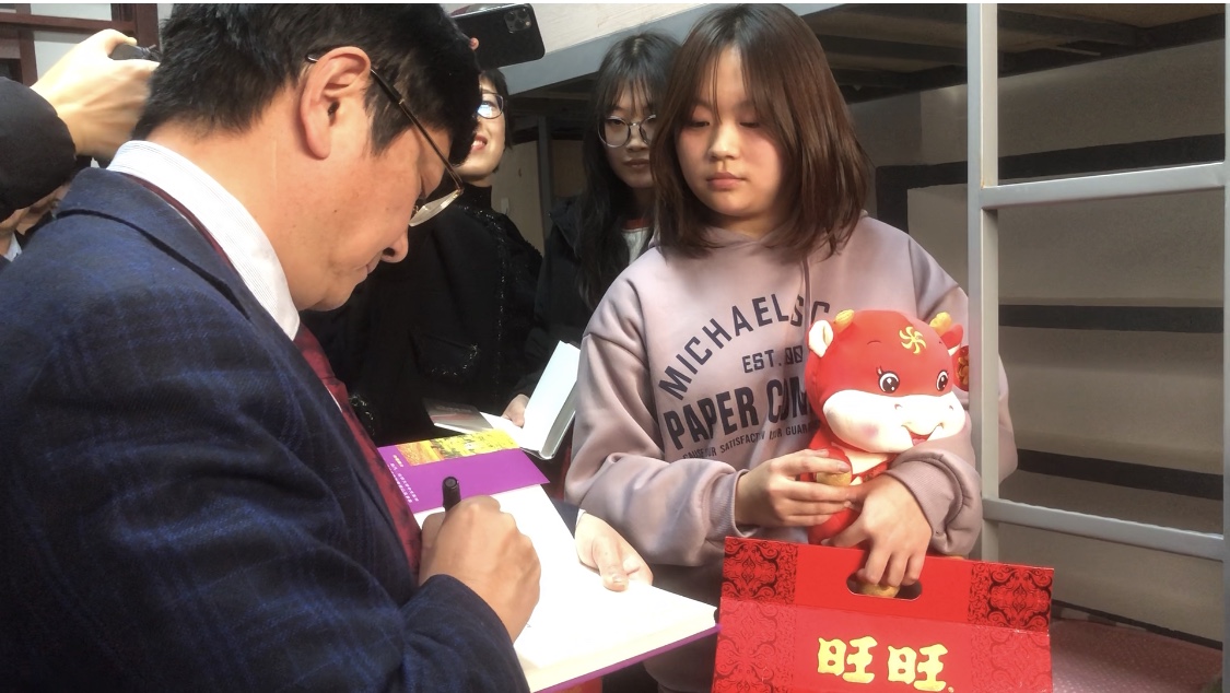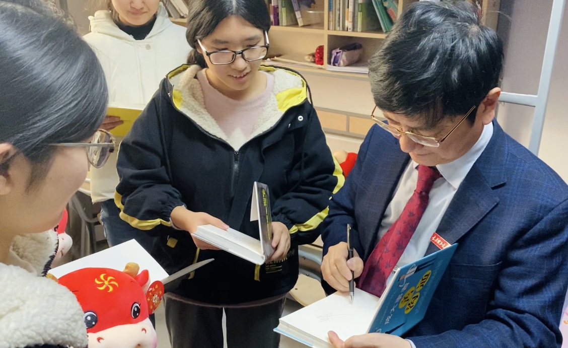 走进宿舍,校领导们亲切询问同学们“家是哪里的?”“哪个学院?什么专业?”“读几年级?”并为同学们送上专门准备的礼包、书籍和牛年吉祥物。“中国抗击疫情能够取得胜利,来自于国家的正确领导、丰富的实践经验、大力的投入以及人民对国家的热爱、理解、支持和配合,同学们坚持假期留校,放弃与亲人团聚,为抗击疫情做出了贡献。”郑强对大家顾全大局的精神表示肯定,并分享了自己的求学经历,勉励同学们虽与父母短暂分别,但有来自学校大家庭的温暖,宁静的校园可以安静地思考和学习,一定会有更多不一样的收获。希望同学们相信国家、相信学校,目前疫情形势向好,只要条件允许,便可以回家团聚。他细心地叮嘱同学们规划好学习生活,常和家人、亲友、老师保持联系,有问题、有需要及时提出,要互相关心、互帮互助,共同度过一个温暖、充实、祥和的春节假期。同学们开心地簇拥在郑书记周围,拿出刚刚收到的礼物——书籍请郑书记签名,郑强欣然在书的扉页为同学们写下“幸福”“梦想”等祝福的寄语,并与大家合影留念。
