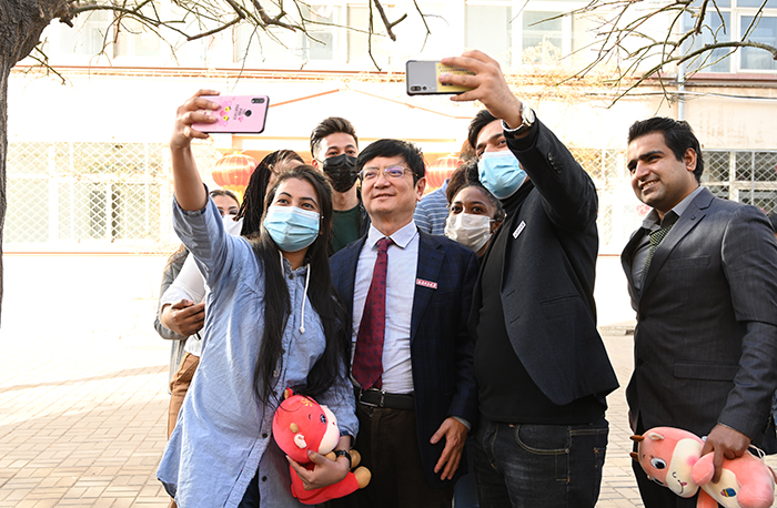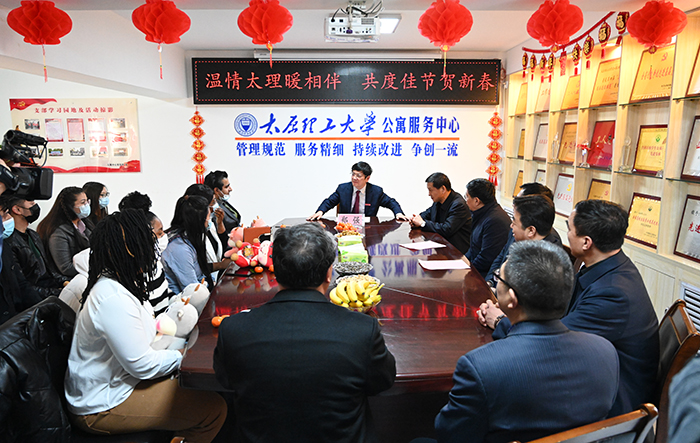 在留学生公寓,郑强将牛气冲天玩偶送到每位留学生手中,并与大家围坐在一起。“很多同学自疫情出现以来就没有回过家,母校也是家,学校将为大家的学习生活提供一切保障。”郑强希望大家多交流、多沟通,保持愉快的心情、保持良好的状态,在学校度过一个开心、快乐、难忘的中国年。