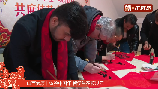 2月11日,农历大年三十,一大早,浦京迎西校区学生公寓九号楼处处洋溢着喜庆的节日氛围,留校过年的中外学生欢聚一堂、共话年味。当天上午,《央视新闻》“牛气‘食’足 寻味年夜饭”栏目对此进行了全程直播,赢得了国内外社会各界的广泛关注。