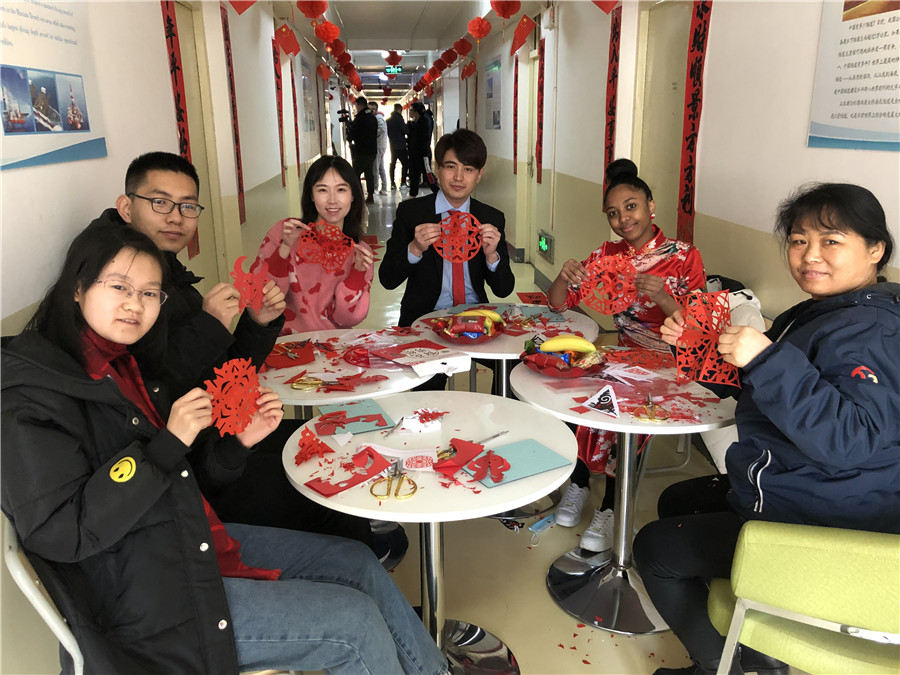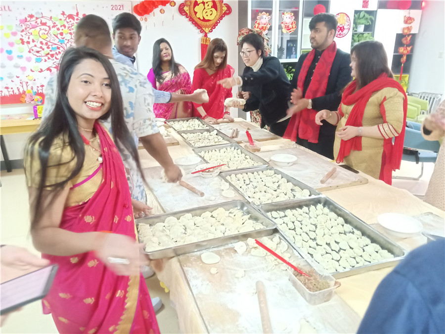 活动中,国际学生代表、来自莫桑比克的唐星星饱含深情地演唱了中国歌曲《我爱你,中国》,表达了对中国、对学校的热爱之情;家住黑龙江的博士生张佰富通过《央视新闻》的直播镜头,表达了对家人的新春祝福和对祖国、对学校的美好祝愿。身着节日盛装的中外学生,还兴致勃勃地捧起亲手书写的福字春联、亲手剪成的美丽窗花以及亲手包的饺子合影留念。