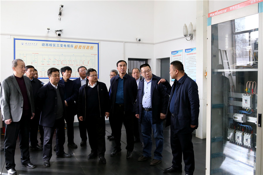冯国瑞一行首先来到动力保障中心迎西校区维修值班室,向春节期间坚守岗位的后勤职工表示感谢与慰问。在第三变电室,冯国瑞现场查看了迎西校区电力设施的运行情况,了解供电系统信息化建设情况与智能计量等项目的实施进度,对智慧能源体系的建设情况表示充分肯定,并要求进一步加强信息化建设,持续深化学校能源改革。