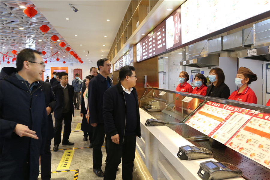 在思源餐厅,炊事员工正在为返校学生准备晚餐,冯国瑞认真查看食堂的疫情防控与食品安全措施,详细了解学生返校后食堂各档口的营业情况。冯国瑞强调,后勤饮食部门要认真学习党中央关于杜绝餐饮浪费的指示精神与《山西省预防和制止餐饮浪费规定》,建立预防和制止餐饮浪费的长效机制,推进“光盘行动”常态化,引领良好的社会风尚。