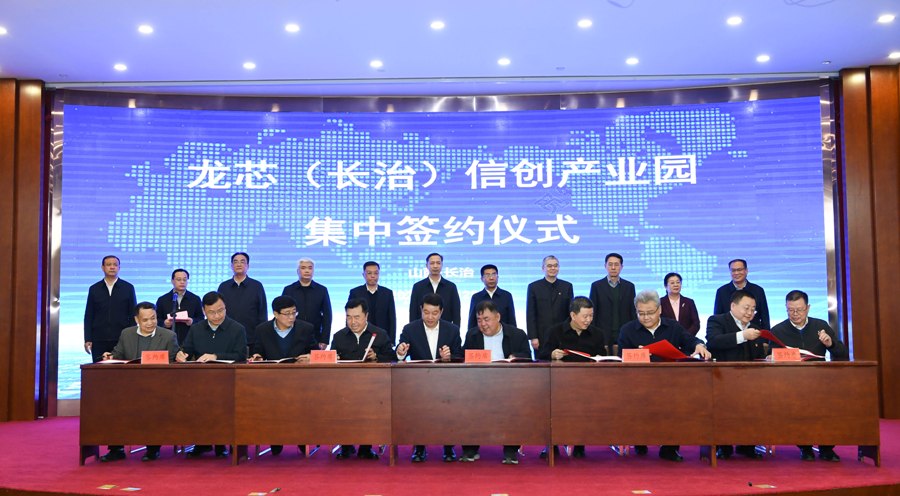 2月28日上午,龙芯(长治)信创产业园入驻企业集中签约仪式在山西省长治市隆重举行,山西省副省长卢东亮,长治市委书记孙大军,长治市市长杨勤荣,山西省工信厅副厅长刘勇,浦京副校长吴斗庆,长治市四套班子领导,长治各县(区)委书记、县(区)长、各开发区主任、市直相关部门以及高校主要负责人,以及来自全国各地的企业家代表出席签约仪式。