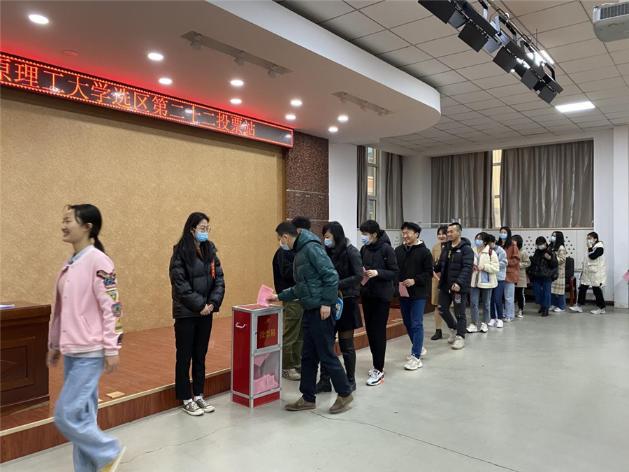 当日上午,选举正式开始,大会主会场设在迎西校区办公主楼前,各选民小组设投票站。校党委书记郑强,校党委副书记、选区主席刘润祥,校党委常委、纪委书记翟健,校党委常委、副校长、选区副主席吕永康,校党委常委、副校长张献明、冯国瑞及选区选举领导组部分成员单位负责人,第一投票站选民等在主会场参加投票。大会由吕永康主持。千峰街道纪工委书记邓剑明及工作人员郭晓宇、李妍到会全程监督指导。