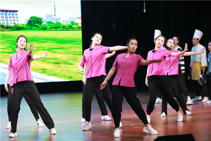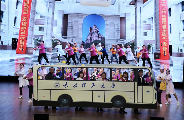 表彰大会上,后勤职工为全体与会者奉献了一场利用业余时间自编自导自演的后勤文化大餐,用后勤人特有的方式,弘扬新时代劳动精神,凝聚“十四五”奋进力量,欢度劳动者自己的节日。序幕微视频《初心的故事》,以“忆初心,守初心、践初心”为主脉络,展现了后勤广大干部职工不忘初心、牢记使命,无私奉献、锐意进取的奋进精神和时代风采;在工装舞《撸起袖子加油干》中,表演者将自己日常后勤工作的场景编排成了欢快动感的舞蹈,生动地展示出后勤各行各业职工快乐向上、斗志昂扬的劳动风采;情景剧《坚守》由浦京在抗击新冠肺炎疫情过程中的真实事件创编,再现了后勤人舍小家为大家,坚守校园阵地,守护师生平安健康的感人场景,让现场的观众无不泪目;诗朗诵《劳动礼赞》,抒发了后勤青年工作者将赤诚的青春和热血、智慧和劳动浇灌在后勤这片沃土的劳动情怀,表达了对学校、师生、后勤工作的无限热爱;一首《山西姑娘》,唱出了山西的风土人情和家乡荣光;由附属小学师生倾情演绎的舞台剧《信仰》,在变换的时空中,让共产党人坚如磐石的革命信仰熠熠生辉,让红色基因永不褪色,代代相传;最后,大合唱《在灿烂阳光下》以气势雄壮的旋律、铿锵有力的节奏、激昂高亢的歌声,唱出了后勤职工对党、对祖国的热爱与深情,以及为学校“双一流”建设再立新功、再创辉煌的豪迈与激情。