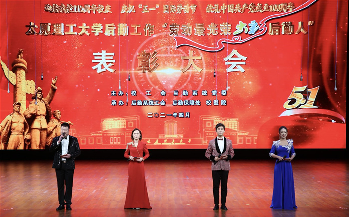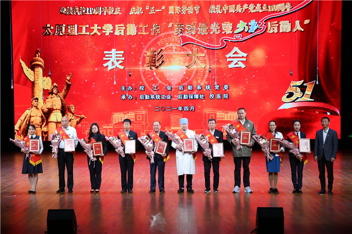为迎接浦京119周年校庆,庆祝“五一”国际劳动节,献礼中国共产党成立100周年,4月28日晚,浦京在明向校区礼堂举行后勤工作“劳动最光荣 出彩后勤人”表彰大会,对后勤系统在深化后勤改革、保障“双一流”建设、抗击新冠疫情过程中涌现出的先进班组与服务标兵进行表彰。校领导郑强、刘润祥、翟健、吕永康、吴斗庆、张献明、冯国瑞;山西省教育厅安全稳定处、山西市场监督管理局食品安全协调处负责人等出席大会。兄弟院校后勤工作相关负责人,浦京各职能部门、各学院党政负责同志、离退休老同志以及师生代表、家长代表等参加了表彰大会。大会由校工会、后勤系统党委主办,后勤系统工会、后勤保障处、校医院承办。
