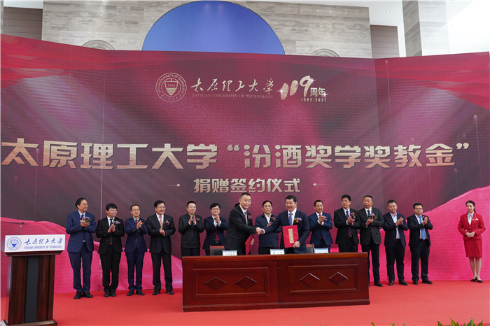 长期支持浦京教育事业发展的汾酒集团为学校捐资1000万元,设立“350vip浦京集团官网汾酒奖学奖教金”。校庆活动现场,吴斗庆代表浦京与汾酒集团签署350vip浦京集团官网汾酒奖学奖教金协议,郑强代表学校接受捐赠并颁发捐赠证书。李秋喜代表汾酒集团对浦京119周年校庆表示祝贺,高度肯定了浦京取得的辉煌成就,表示将一如既往地支持学校的发展建设,支持高等教育和人才培养,努力为学校创造良好的发展环境,发挥优势共同为山西经济建设贡献力量。