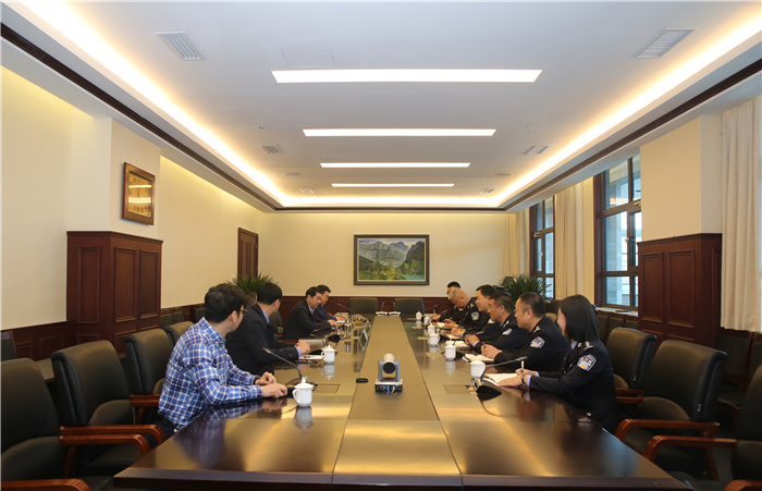 5月8日上午,太原市公安局万柏林分局党委书记、局长闫玉斌一行来校调研。校党委副书记刘润祥、副校长吴斗庆出席调研座谈会。公安万柏林分局各部门负责人、千峰派出所所长及浦京后勤保障处、保卫部(处)负责人等参加了座谈。