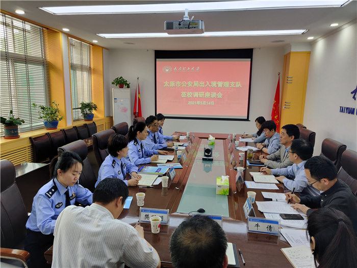 5月14日上午,太原市公安局出入境管理支队支队长时晨霞一行莅校调研,副校长吕永康出席座谈会,双方相关部门负责人等参加座谈会。