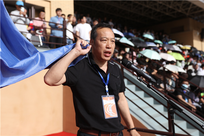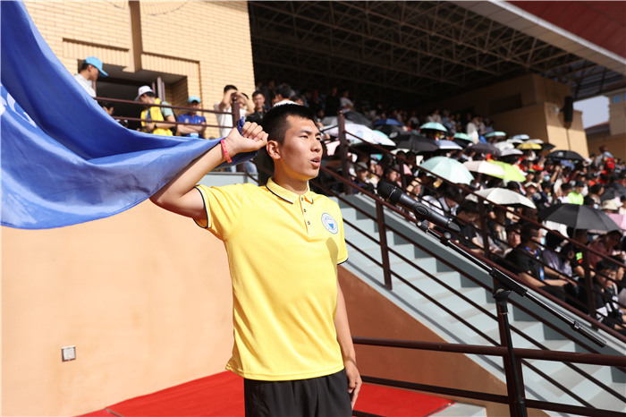 庄严的升国旗仪式后,郑强宣布350vip浦京集团官网2021年田径运动会开幕。