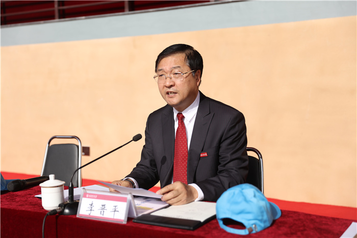李晋平致运动会开幕词,代表学校向精心筹备本届运动会的部门和学院表示诚挚的感谢,向全体运动员、裁判员和工作人员致以亲切的问候和良好的祝愿。他回顾了近年来浦京体育工作取得的一系列新进展,指出体育运动会是丰富校园文化生活、全面提高师生体育素质、集中展示全校各单位精神风貌的重要举措,希望全体参赛运动员、裁判员、工作人员齐心协力,积极进取,顽强拼搏,共同努力把本次运动会办成一场充满趣味、诠释真情、彰显力量、演绎精彩的体育盛会;希望全校师生以本次运动会为新的起点,牢固树立“健康第一、终身体育”的理念,练就强健体魄,磨砺坚韧意志,塑造健全人格,养成终身体育锻炼习惯和健康生活方式,将运动中所蕴含的团队合作、公平竞争、坚韧顽强、奋发进取的体育精神转化为深化综合改革、实施“十四五”规划、建设“双一流”的不竭动力,以良好的精神状态投入到为学校建设发展事业做贡献当中,立志为谱写世纪学府壮美华章而不懈奋斗,为建党100周年献礼。