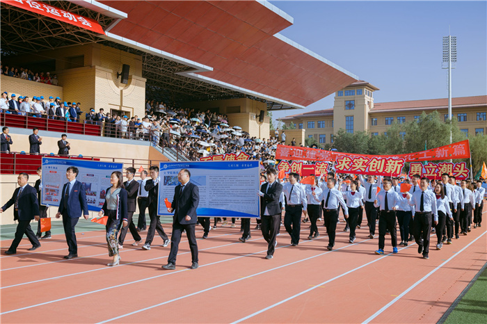 “党团先锋”“学风示范”“勤工榜样”“志愿服务”“创新表率”“学子骄傲”展示方队首次亮相校运会,诠释了代代优秀的理工学子用责任与信念,用智慧与勤奋,铸就了世纪学府的荣光,演绎着百年老校新的希冀与未来。