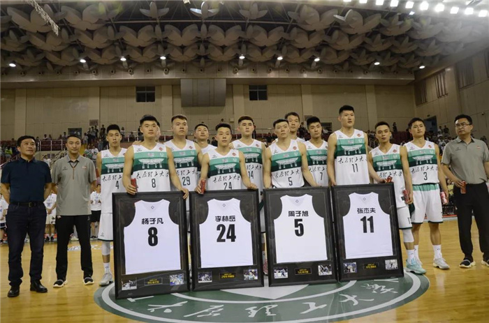 赛后,在球场中央举行了浦京男篮队员李林岳、周子旭、张杰夫、杨子凡的退役仪式。