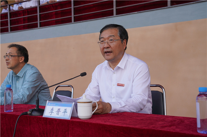 李晋平致闭幕词,代表学校、代表运动会组委会,向在运动会上取得优异成绩的单位和运动员们致以热烈的祝贺,向为成功举办本次运动会精心组织、公正裁判的全体裁判员和为赛事顺利如期举行运维筹备、默默奉献的工作人员表示诚挚的慰问,向积极支持参与本次运动会的部门、学院、领导、老师和运动员、志愿者、啦啦队表示衷心的感谢。他说,此次运动会将学生运动会、教职工运动会合二为一,学生运动会又特别增加了研究生群体,三个群体共同呈现了一场精彩纷呈的盛会,运动会在体育竞技和精神文明上的“双丰收”,将进一步推动浦京竞技体育、阳光体育活动不断迈上新的台阶,进一步激励浦京全体师生拼搏进取、再创新高。希望全校师生以本次运动会的成功举办作为加油站,牢固树立终身锻炼的健康理念,养成“走下网络、走出宿舍、走向操场”的体育习惯,追求健康积极的生活方式, 以更加饱满的热情、昂扬的斗志和拼搏的精神,全身心投入到学校“双一流”建设中,努力为创建综合性、研究型、高水平一流大学而不懈奋斗。