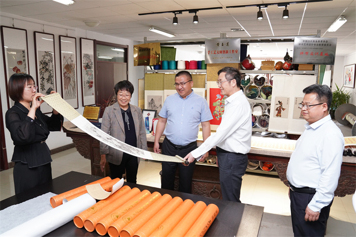 当日下午,袁亚湘院士深入浦京超硬材料联合实验室、纺织服装产教融合研创中心、设计艺术国家级实验教学示范中心、美术馆等实地参观调研。在超硬材料联合实验室,袁亚湘院士对合成金刚石关键核心技术、发展目标及国际国内研发生产情况进行了详细了解,对该实验室在生产工艺、生产装备、深加工产品等方面实现全方位突破给予了充分肯定,鼓励团队保持创新精神,勇攀科学高峰。来到纺织服装产教融合研创中心,袁亚湘院士认真听取了负责人对其专业特色、教学实训、创新创业方面的介绍。在设计艺术国家级实验教学示范中心,袁院士深入各工作室参观,在洋溢着艺术气息的实验教学场所驻足欣赏并亲身体验,特别对浦京在文物修复与保护方面所做的融合学科资源、传承历史文化的贡献给予了高度评价。