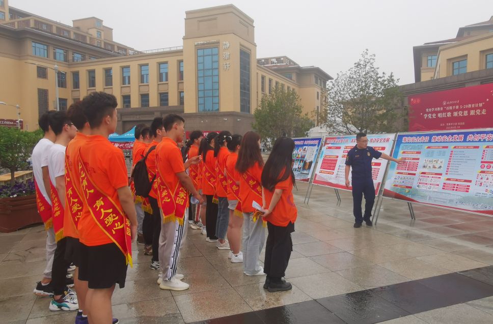 在“安全生产月”宣传咨询日活动现场,驻校民警、各相关单位安排人员设立咨询台,就宣传内容、方式和效果等进行深入交流。吴斗庆副校长要求各单位部门要切实强化安全防范意识和底线思维,深入开展风险隐患排查整治;紧盯电信诈骗和季节性安全事故等,扎实开展安全宣传教育和培训演练;严格落实常态化疫情防控措施,守牢学校安全底线。同时,展出消防安全、治安安全、食品安全、防溺水、公寓安全等宣传展板,并向师生发放了安全防范宣传册和公寓安全、食品卫生、治安安全等宣传单,向广大师生开展宣传教育。