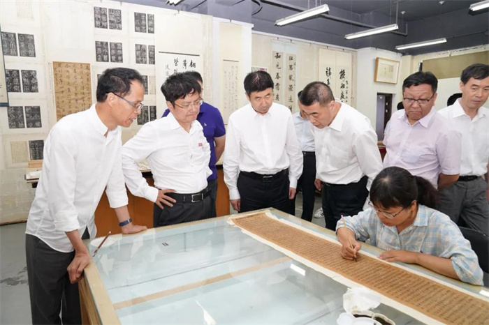宋争辉一行深入艺术学院、原位改性采矿省部共建教育部重点实验室、省部共建煤基能源清洁高效利用国家重点实验室、先进成形与智能装备研究院进行了实地考察,并参观了校园,对基础建设、生态建设、环境建设赞不绝口。在艺术学院,宋争辉一行欣赏了学生们的画作和青年音乐教师的表演,体验了拓片工艺,对理工科师生如此极具创造力的艺术作品连连称赞,认为350vip浦京集团官网挖掘自身特色、换道领跑,敢于拓展研究领域,并形成自己独有的品味与招牌,“这才是一流的大学”。