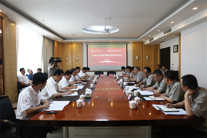 7月27日下午,中国工程院院士、浦京校长黄庆学带领副校长冯国瑞等赴太原重型机械集团有限公司签订战略合作框架协议。签约仪式在太重科技大楼一层多媒体会议室举行,太原重型机械集团有限公司党委书记、董事长韩珍堂,党委副书记、副董事长、总经理陶家晋出席签约仪式,相关部门(单位)负责人参加签约仪式。