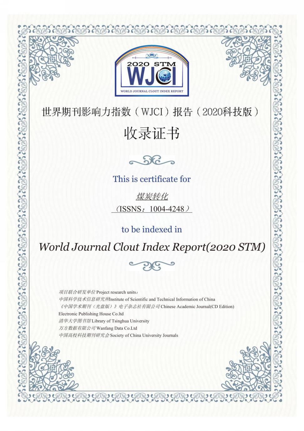 《煤炭转化》入选《世界期刊影响力指数(WJCI)报告(2020科技版)》