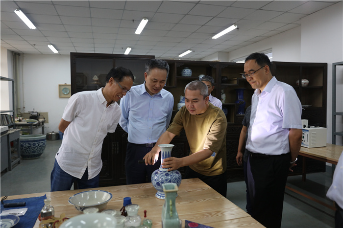 座谈会后,汤广福院士深入浦京艺术学院文物修复实验室实地调研,参观了师生修复的珍贵文物,了解了浦京文物保护与修复技术,并在艺术展馆欣赏了艺术学院师生精彩的演奏和优美的歌曲。在赞叹中国古文化艺术博大精深的同时,汤广福院士称赞浦京在文化遗产修复保护方面所做的大量工作具有深远的历史意义。他说,科技和材料的进步可以使文物修复更准确地还原历史,希望学校能够继续努力,培养更多相关专业的优秀人才,将传统技艺传承保留。