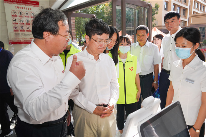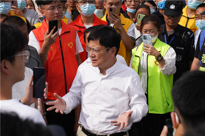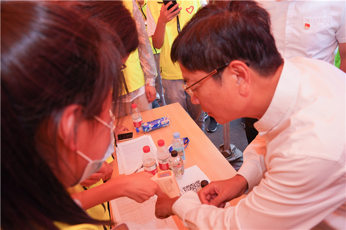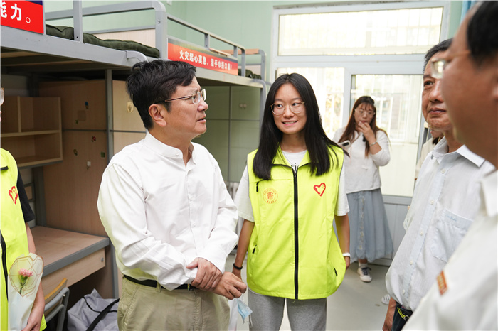 郑强查看了校门口报到学生专用通道,与现场的新生和家长进行了交流。身着彩色马甲的志愿者往返穿梭在校园里,郑强一一对大家辛勤的工作表示慰问。随后,郑强来到学生宿舍区,看到志愿者们有条不紊地帮助新同学进行入住工作,他关心地询问新同学“你家是哪里的?”“报到顺利吗?”,夸赞志愿者“一入学就当志愿者,服务同学,你们是好样的!”,并叮嘱大家“天气热,大家辛苦了,注意身体,做好防护。”