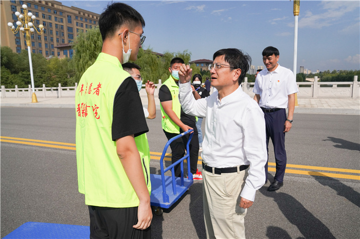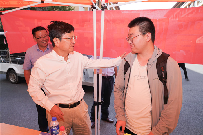 虽然还未到2021级新生正式报到时间,校园已经迎来了第一批“新主人”——新生志愿者,他们提早来到学校,提前熟悉校园环境,穿上志愿者马甲正式上岗服务,热心为即将到来的迎新工作贡献自己的力量。9月10日,新生志愿者们陆续报到上岗,校党委书记郑强带领党委副书记刘润祥及相关部门(单位)负责人,看望慰问新生志愿者及家长,仔细了解迎新工作准备情况。