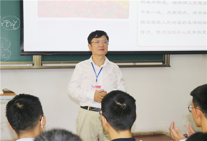 当天下午,在明向校区行知楼B115教室,校党委书记郑强深入马克思主义学院朱颖原老师的课堂,听取朱老师讲授的《马克思主义基本原理》第一课。课堂上,朱老师情绪饱满、思想厚重的讲授不仅点燃了整个课堂,而且引导同学们深入思考“中国共产党为什么能,中国特色社会主义为什么好,归根结底是因为马克思主义行”这一重要命题。郑强对朱颖原老师认真负责的教学态度、丰富生动的教学内容和显著的教学效果给予充分肯定。“这堂思政课有温度、有厚度、更有烈度”,他表示,整堂课朱老师情绪饱满、充满激情,深深地感染了课堂上的每一位同学,而且课堂内容充满了思想的厚度和浓度,没有任何虚浮的空谈,紧密地结合了新时代伟大中国“两个一百年”奋斗目标以及与世界形势的对比,带给青年大学生极大的思想冲击。“我为我们350vip浦京集团官网有这样杰出的思政课教师而感到骄傲!”