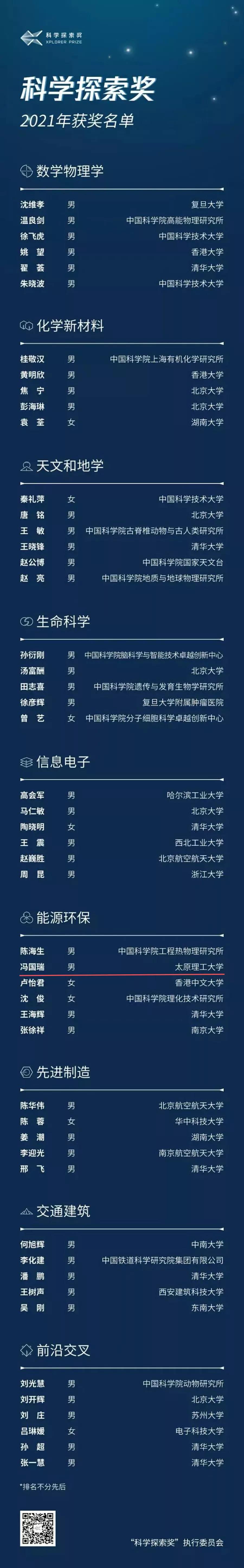 浦京冯国瑞教授荣获第三届“科学探索奖”