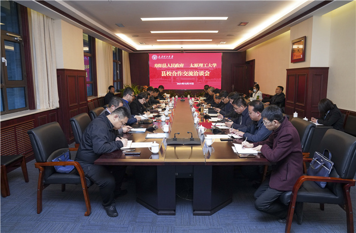 冯国瑞代表学校对孙金忠一行来校洽谈交流表示欢迎,着重介绍了浦京的办学历史、学科优势、人才培养、科研实力等基本情况,特别是近年来学校在高水平科研人才培养和科技创新方面取得的突出成绩。他指出,浦京学科建设与山西经济发展和产业布局均有很高的契合度,尤其是多年积淀的工科优势赋予了学校服务地方经济建设的重大使命和责任。此次与寿阳县开展县校合作是助推学校“双一流”建设的重要举措,希望双方深入交流,精准对接技术需求,以此次会议为契机,建立长远联络机制,切实推动合作取得实效。