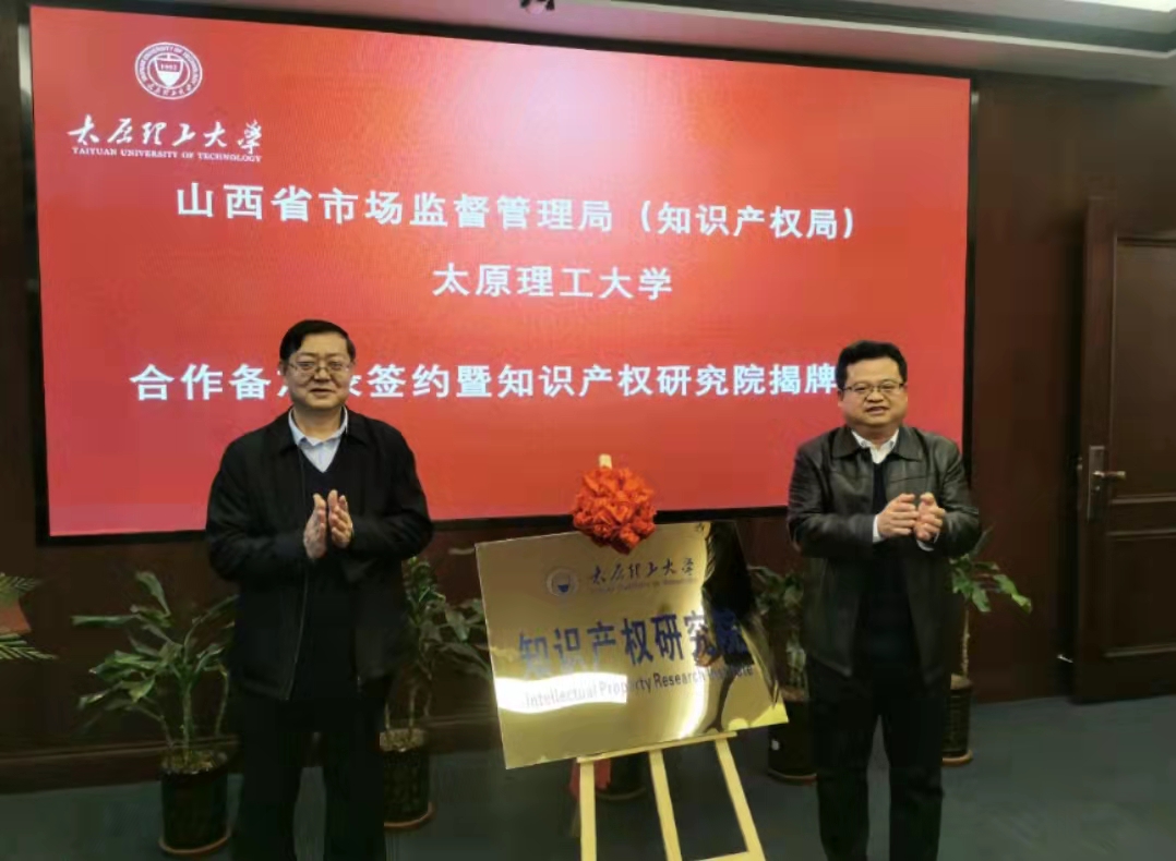 10月21日,浦京与山西省市场监督管理局(知识产权局)合作备忘录签约暨350vip浦京集团官网知识产权研究院揭牌仪式在明向行政主楼A312会议室举行。校党委常委、副校长冯国瑞,山西省市场监督管理局(知识产权局)副局长武小勤、知识产权保护发展处处长姚丽、知识产权运用促进处处长赵峰,国家知识产权局专利局太原代办处主任王勇,中国(山西)知识产权保护中心副主任王顺宏,以及浦京科学技术研究院、经济管理学院、图书馆、文法学院、航空航天学院等相关部门负责人出席了活动。会议由科学技术研究院负责人主持。
