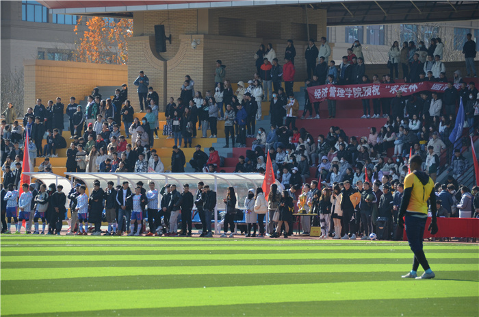 三四名决赛在数学学院与矿业工程学院之间展开,经济管理学院和信息与计算机学院则上演最后的巅峰对决。决赛吸引了学校师生的广泛关注,有超过1000名的观众现场观看,紧张激烈的比赛让观众席的同学们屡屡传来激动的喝彩声。经过激烈角逐,数学学院击败矿业工程学院获得季军。决赛中,经济管理学院和信息与计算机学院旗鼓相当,上半场双方势均力敌,各进一球;下半场经管学院把握住了机会,再得一分,最终以2:1击败信计学院,取得了本次比赛的冠军。
