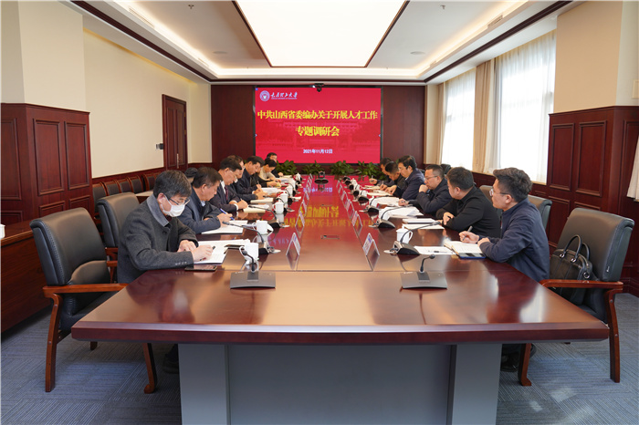 11月12日,中共山西省委编办副主任李遊一行莅临浦京明向校区,就人才工作开展情况进行专题调研。校党委书记郑强会见调研组一行,校党委副书记李晋平、校党委常委、副校长吴斗庆出席调研座谈会。学校相关部门(单位)负责人参加了座谈。座谈会由吴斗庆主持。