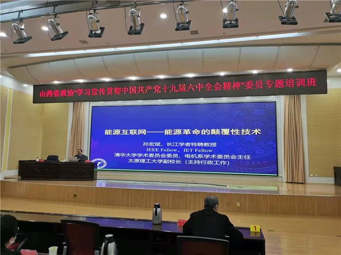11月23日至26日,山西省政协在省委党校举办“学习宣传贯彻党的十九届六中全会精神”委员专题培训班。培训历时3天半,课程包括党的十九届六中全会精神解读、山西产业高质量发展的战略设计、党风廉政建设等内容。培训期间,11月24日,浦京党委副书记、副校长(主持行政工作)孙宏斌应邀向培训班作了题为“能源互联网——能源革命的颠覆性技术”的专题报告。