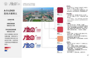 5.色彩上使用了中国传统色,厚重浓郁的朱湛色加温润鲜活的渥赭色,表达着爱党、爱国、爱校的内涵和学校120周年校庆的喜庆吉瑞;