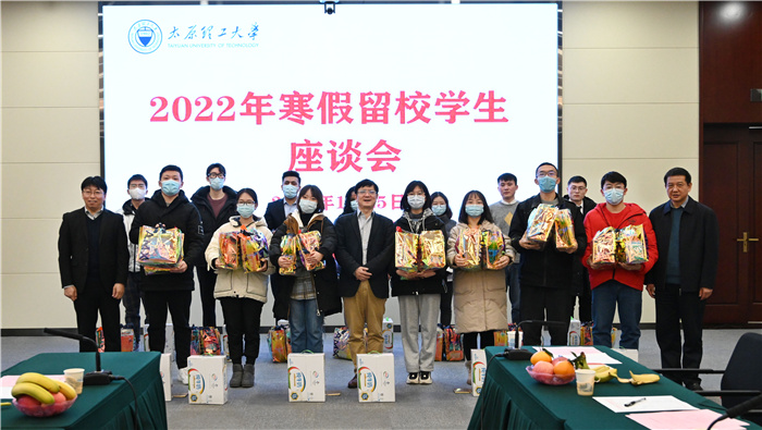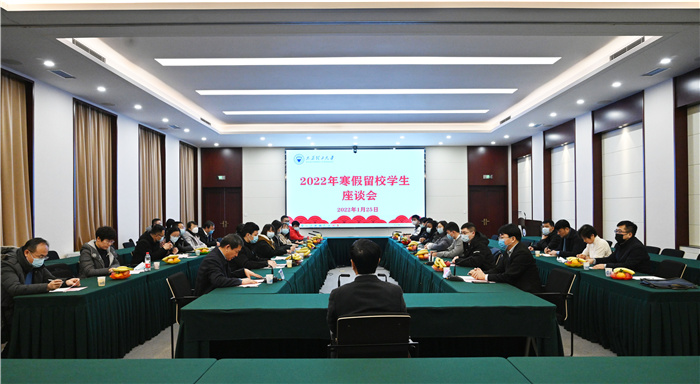 相关负责人在座谈会上详细介绍了学校的疫情防控工作情况及留校学生春节期间的学习生活、餐饮住宿、文化活动等具体安排。新春慰问大礼包、开放自习室实验室、假期勤工助学岗、舒适的住宿、丰富的文化活动、免费春节餐、年夜饭等详细安排,为寒假留校学子提供了全方位、高质量的服务和保障。