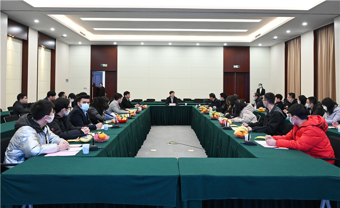 由于科研学习任务、新冠疫情防控等因素,浦京部分学生将留校度过春节和寒假。新春将至,1月25日上午,校党委书记郑强,校党委副书记刘润祥,校党委常委、副校长张献明在迎西校区会议中心,与部分留校学生代表座谈交流,慰问关怀留校学生的学习与生活。党办校办、宣传部、学生工作部(处)、研究生院、后勤保障处、校团委、国际教育交流学院等相关部门(单位)负责人参加座谈。座谈会由刘润祥主持。