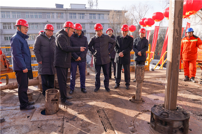 12月19日上午,“4000米深层裂缝型储层地热开发科学钻探”项目在浦京虎峪校区开钻。省自然资源厅党组成员、省地质勘查局党组书记、局长彭东晓,山西地质集团公司党委书记、董事长江荣,山西省地质水文勘察研究院院长孙富民,山西省煤炭地质水文勘察研究院党委书记马涛,浦京党委副书记、副校长(主持行政工作)孙宏斌,中国科学院院士、浦京教授赵阳升,浦京原位改性采矿教育部重点实验室主任梁卫国等出席开钻仪式。相关部门(单位)负责人、项目方研究人员、施工方技术与施工人员等参加仪式。
