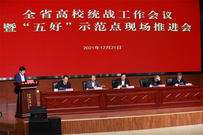 会议对山西全面加强新时代高校统战工作进行了安排部署。会议指出,做好高校统战工作是落实党的重大决策部署,服务中心大局的政治要求。要提高站位,切实增强做好新时代高校统战工作的责任感和使命感,立足当前,切实抓好高校统一战线领域各项重点工作。突出思想政治引领,着力抓好高校党外知识分子工作。突出多党合作基础,着力做好高校民主党派和无党派人士工作。突出团结和谐稳定,着力增进高校民族交流融合。突出广泛凝聚人心,着力推动高校港澳台侨工作。要加强领导,切实推动高校统战工作再上新台阶。齐心协力、真抓实干、开拓创新,努力开创高校统战工作新局面,为山西全方位推动高质量发展贡献统战力量,以优异成绩迎接党的二十大胜利召开。