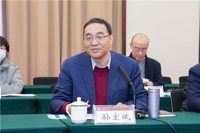 孙宏斌致欢迎词,代表学校向太原市委组织部和万柏林区领导一行莅校表示欢迎,介绍了学校基本情况,特别是学校在服务社会、加速科研成果转化、全面推进校地合作等方面的实践探索。他表示,学校将始终认真落实山西省委总体思路和要求,统筹人才培养和社会服务,统筹科技创新和产业引领,统筹学科建设和内涵式发展,始终坚持产学研贯通式一体化办学,不断拓宽服务山西区域经济社会高质量发展的路径,朝着综合性研究型高水平一流大学目标奋勇前行。