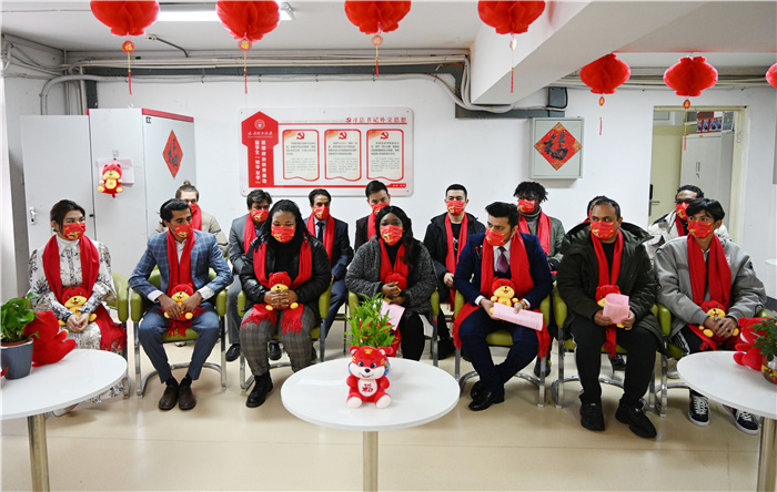 来自巴基斯坦、尼日利亚、哈萨克斯坦、孟加拉国、乌兹别克斯坦、莫桑比克、阿富汗等十余个国家的学生分别用中文做自我介绍,向大家拜年。他们纷纷表示,虽然疫情不能回家,但是学校的关怀和校领导的牵挂让大家感到十分温暖。来自莫桑比克的唐星星和来自尼日利亚的楚安国、孟碧玉为大家表演了精心准备的中国歌曲和戏曲,表达了新年的喜悦。