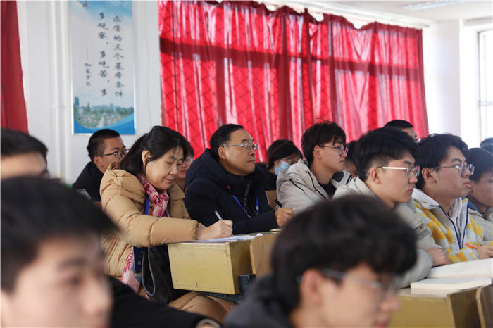校党委副书记、副校长(主持行政工作)孙宏斌到迎西校区思贤楼1005教室,与同学们一起听了李世强老师《材料力学B》课程的讲授,并做了详细记录。课程结束后,孙宏斌对师生课堂表现给予充分肯定,详细了解了课程的开设情况,并就如何创新教学方法,加强课堂互动,推动课堂教学改革与教师进行了亲切交流,鼓励教师深化教学研究、不断提高课堂教学质量。