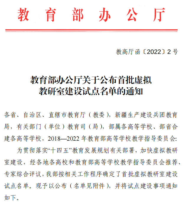 浦京获批教育部首批虚拟教研室建设试点