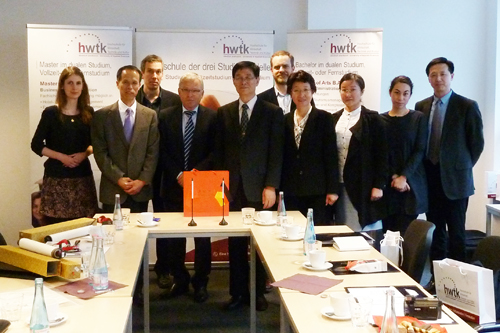 副校长许并社教授(左五)率代表团与德国经济技术和文化高等学院校长(左四)合影