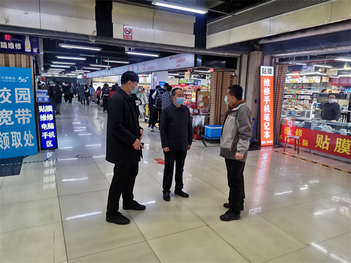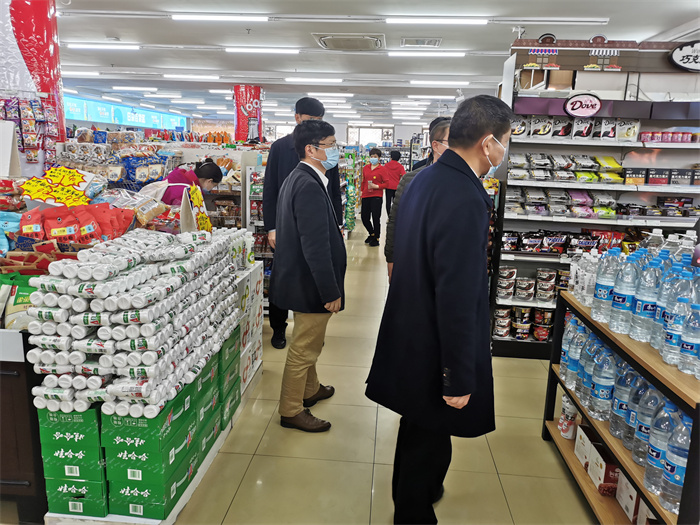 校领导一行先后到保卫处、餐厅、超市、宿舍等处实地查看。在迎西校区南门了解了校门管理情况,特别是人员出入检查、车辆管控措施等情况,还查看了相关安全设施,强调保卫处要重点加强校内一切公共场所和重点部位的巡查,将校园安全工作关口深推前移,进一步加强管理,校内人员出入严格查看工作证并测温验码,同时严控校外人员入校,切实做到“守住门、盯住人、把好关、保安全”,将各项工作落实、落细。在食堂查看了食堂餐品供应、环境消杀、物资储备等情况,深入公寓检查了公共设施安全、防控措施落实、宿舍安全卫生等情况,在超市与学生亲切交谈,了解了他们的学习生活等有关情况,嘱咐大家戴好口罩,注意个人卫生,保持安全距离。