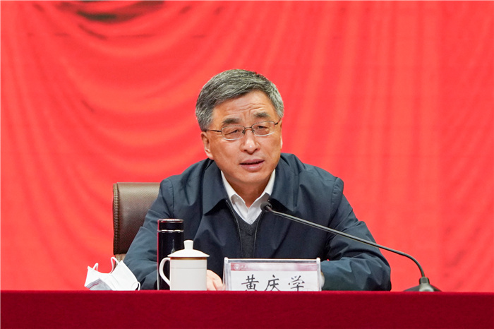 郑强在讲话中指出,今年的全国两会是在中国共产党成立100周年、党的十九届六中全会之后,党的二十大召开之前这一特殊时间节点举行的一次重要会议,也是面对国际形势深刻复杂变化、百年变局与世纪疫情交织叠加这一特殊发展时期举行的一次重要会议。习近平总书记发表了一系列重要讲话,提出了5个“必由之路”、5个“战略性的有利条件”,宣示5个“我们就一定能够”,证明了中国道路的正确和伟大,为全国人民奋进新征程、建功新时代坚定了信心,指明了方向。全校师生员工要心怀“国之大者”,主动对标对表,深刻学习领会,坚决贯彻落实。学习贯彻两会精神要结合习近平总书记考察调研山西重要指示精神和省第十二次党代会部署要求,进一步凝练浦京学科特色,提升服务山西省和煤化工行业的科研创新能力,保持学校的本色、本分、本真,始终贴近山西经济社会发展、对接国家战略需求,助力全方位推动高质量发展。全校上下要在全面建设社会主义现代化国家、向第二个百年奋斗目标进军新征程的关键时期和大好形势下,全面深化学校综合改革,做好建校120周年校庆工作,奋力推进“双一流”建设,为党的二十大胜利召开献礼。