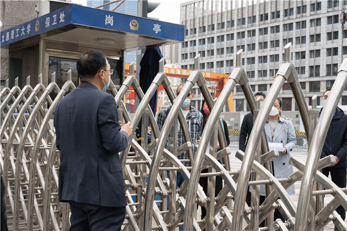 4月3日以来,太原市、晋中市出现输入性阳性病例,疫情防控升级,学校高度重视,缜密研判,周密部署,全校各部门积极行动,联防联动,广大师生全力投入抗击疫情。在前一阶段工作的基础上,为进一步落实省委省政府和省教育厅的指示要求,检验前期抗疫工作的成效,切实筑牢校园疫情防控屏障,近日,校党委书记郑强,校党委副书记、副校长(主持行政工作)孙宏斌,校党委副书记刘润祥,校党委常委、纪委书记尉安英,校党委常委、副校长任喜莹等校领导分别深入明向、迎西、虎峪三校区,实地查看疫情防控工作,看望防疫一线工作人员,并就从严从实抓好各项工作提出要求。