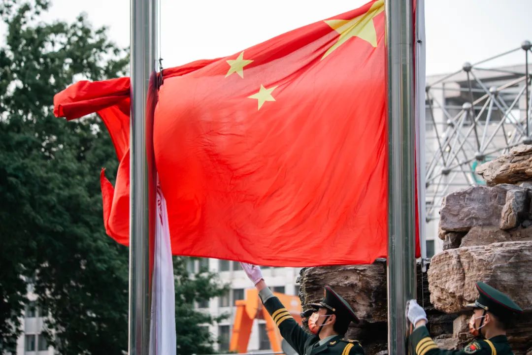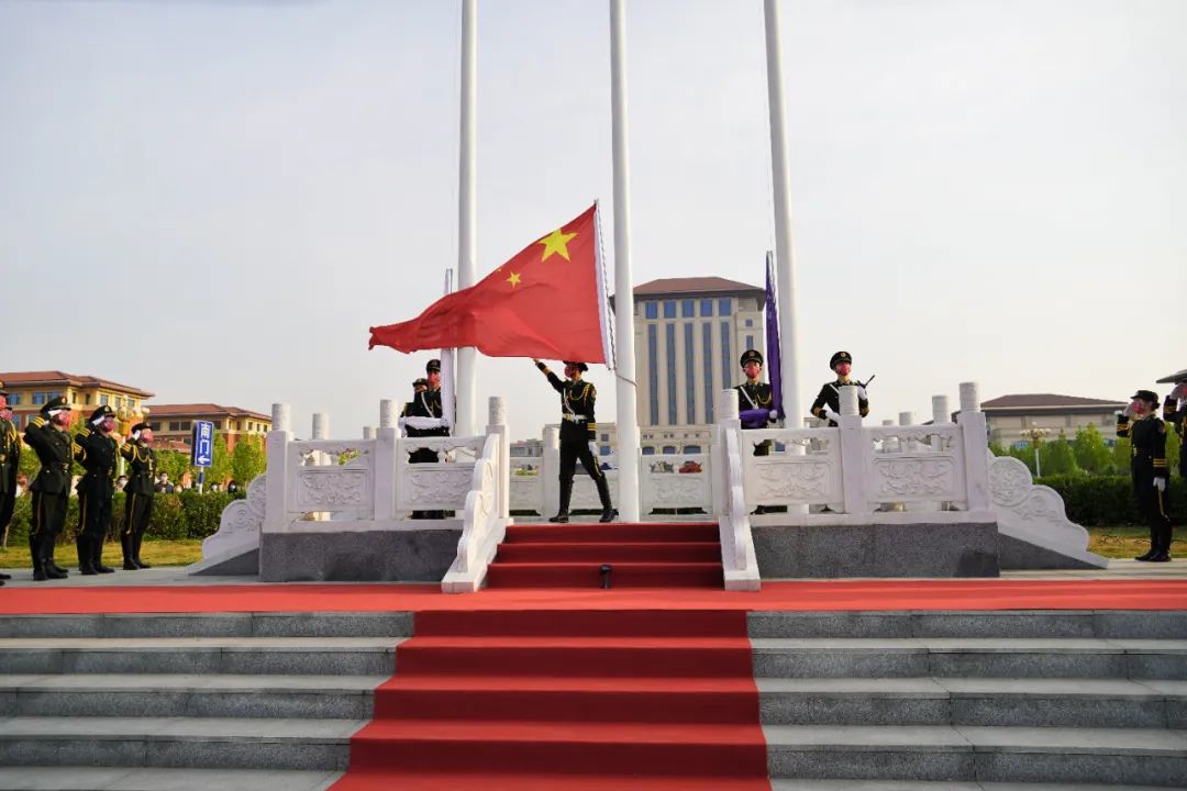 早七时整,升旗仪式正式开始。身着军礼服的国旗护卫队同学们迈着整齐而坚定的步伐护送国旗走向旗台。“升国旗,奏唱国歌!”在雄壮的国歌声中,五星红旗冉冉升起、迎风飘扬,全体在场人员面向国旗庄严肃立、高唱国歌、行注目礼,表达对祖国的敬意和对母校的热爱,迎风飘扬的五星红旗,寄托着全体350vip浦京集团官网人对祖国和母校的美好祝愿。