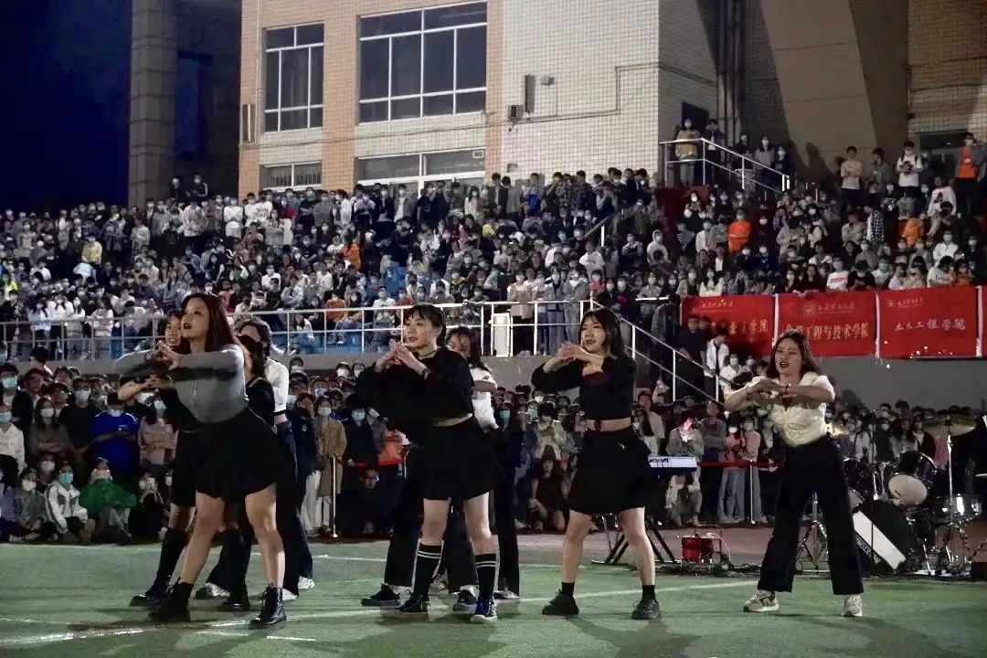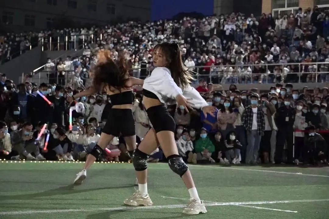 虎峪篮球场上,学生们高声齐唱《南山南》《海阔天空》等脍炙人口的歌曲。绚烂的舞姿伴随闪耀的音符,舞蹈《Attention》《一起向未来》活力四射、青春洋溢,在场师生尽情欢呼,现场掌声雷动。