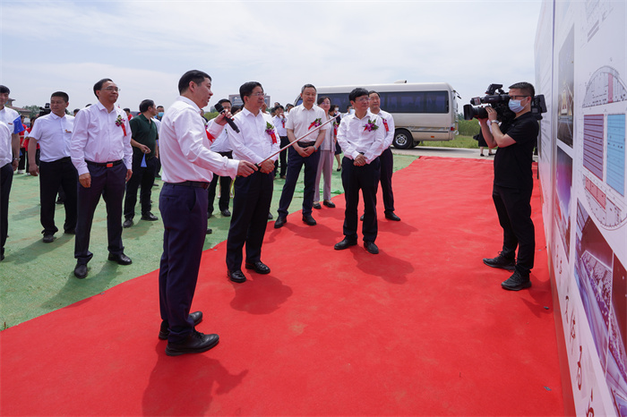 主席台全体嘉宾移步奠基场地,为奠基石揭幕并共同挥锹为奠基石培土。